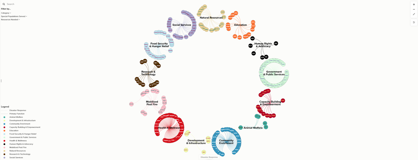 The mapping process will aid the community at large to gain both individual and collective clarity and to develop a collective story of the present state of our community services sector, particularly those active in the wake of the 2023 Maui wildfires. This process will also assist with interconnections and interdependencies among organizations and sectors, produce materials to help strategically attract additional support, and to inform long-term strategy for Mauiʻs continued recovery and return to abundance.